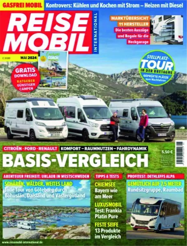 Europas faszinierendes Reisemobil-Magazin erscheint monatlich. Mit aufschlussreichen Tests, spannenden Reiseberichten, Stellplatztests und vielem mehr. Branchenweit bekannt: der „Profitest“ für Reisemobile.